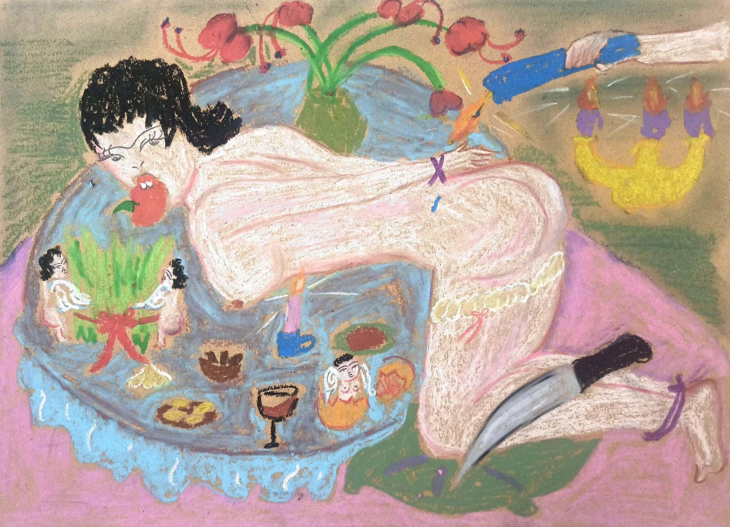 AASI: Much of your work draws on feminine mythology: figures who are bleeding, slaying, or shapeshifting. What does myth allow you to express that realism cannot?