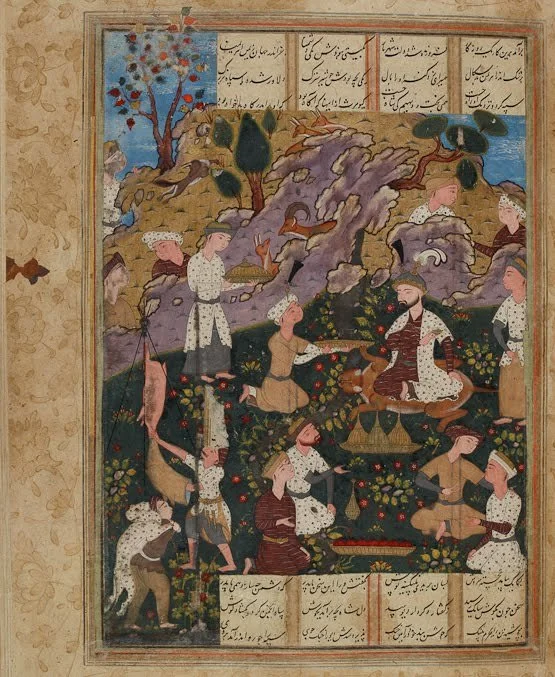 Although not a strictly historical text, the Shahnameh serves as the most important source of oral history in the Persian language. Throughout the text, there are several descriptions of Bazms: an Iranian celebration that involves food and wine.